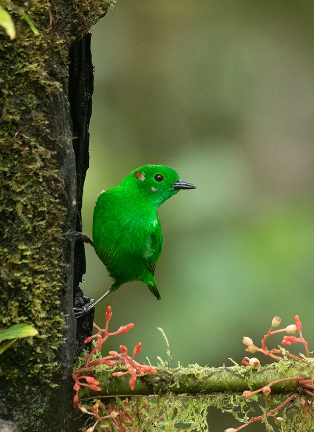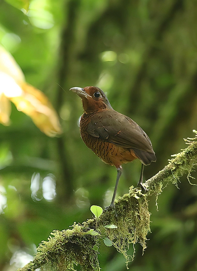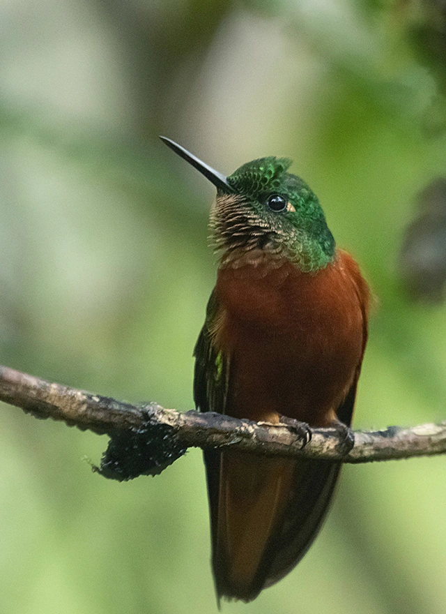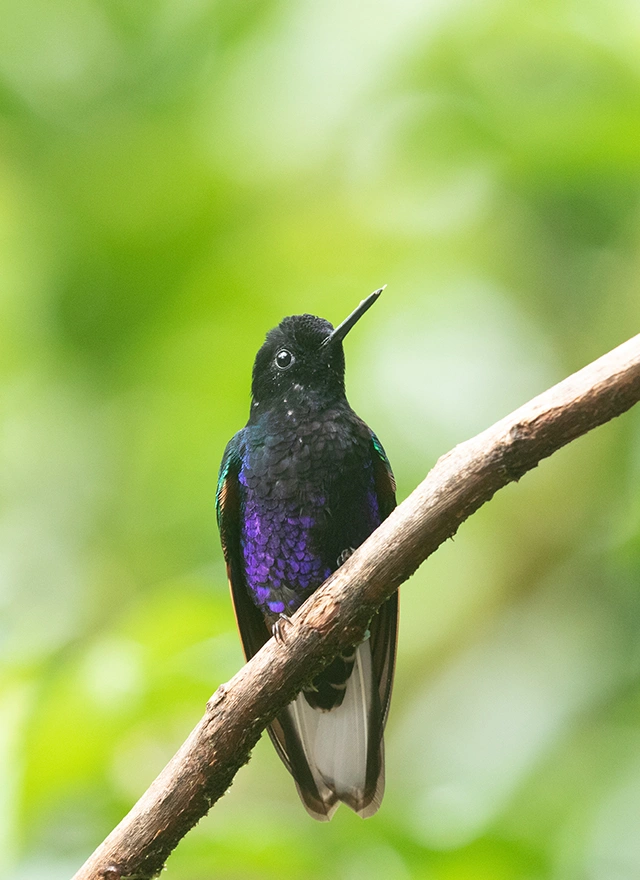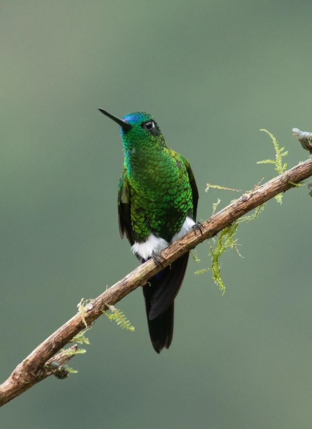 The journey begins in the cloud forests near Quito, where feeders bring close encounters with Sword-billed Hummingbird, Sapphire-vented Puffleg, and Chestnut-naped Antpitta. Exploring the famous Tandayapa Valley and reserves like Zuroloma, Amagusa, and Milpe reveals an astonishing variety of tanagers, trogons, barbets, and manakins, while Río Silanche adds a taste of the lowlands with Scarlet-browed Tanager, Purple-chested Hummingbird, and Chocó Trogon.