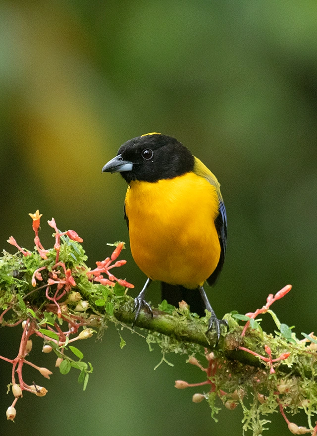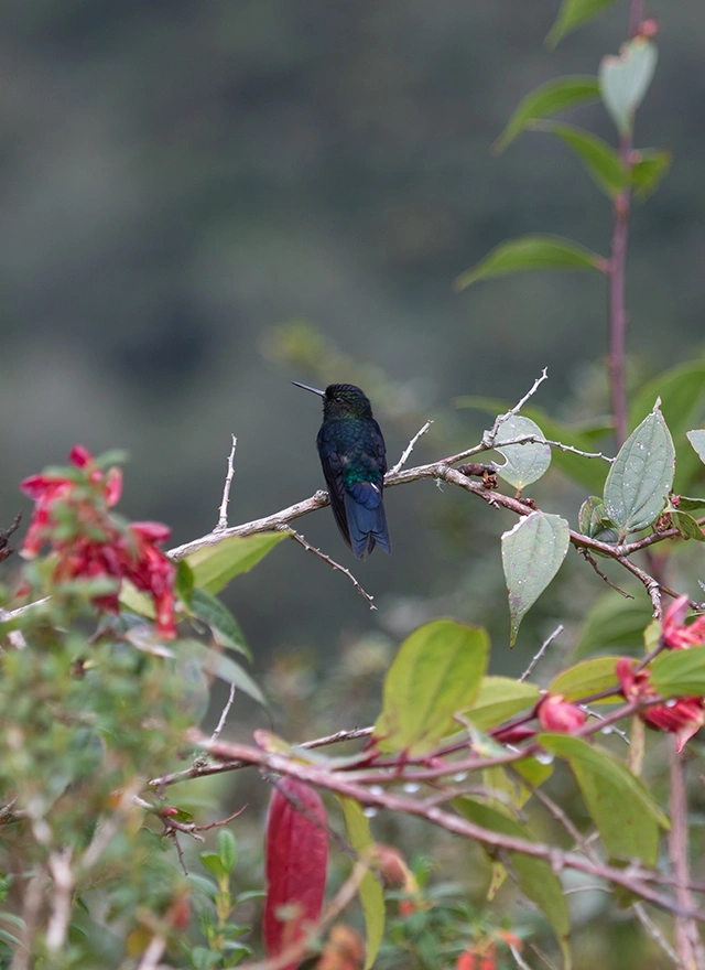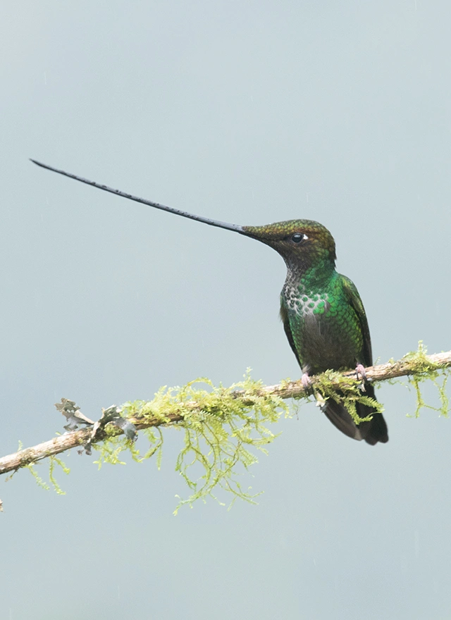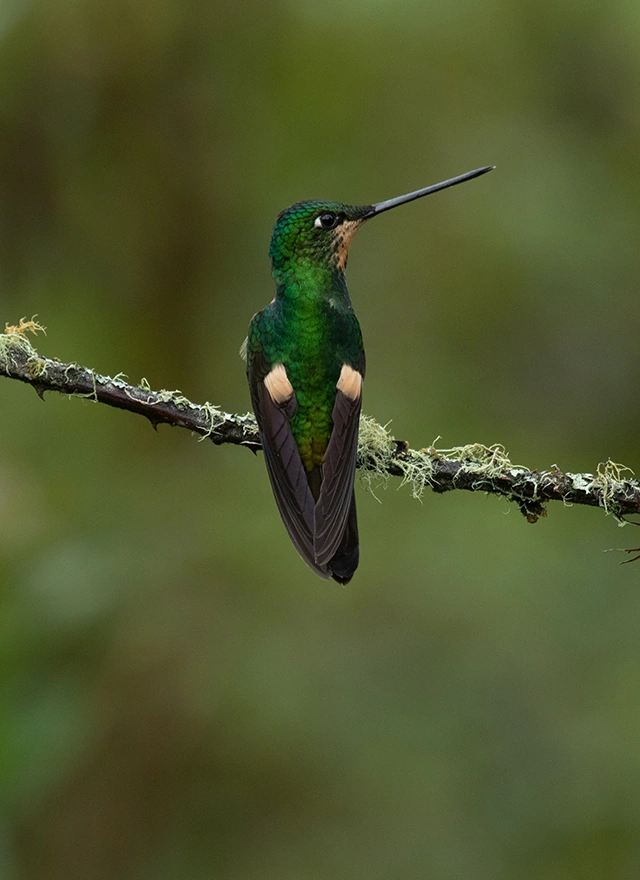 Key species: Key species: Andean Condor, Sword-billed Hummingbird, Violet-tailed Sylph, Velvet-purple Coronet, Empress Brilliant, Toucan Barbet, Golden-headed Quetzal, Giant Antpitta, Moustached Antpitta, Chestnut-crowned Antpitta, Glistening-green Tanager, Moss-backed Tanager, Scarlet-browed Tanager, Club-winged Manakin, Chocó Trogon, Ecuadorian Hillstar.
