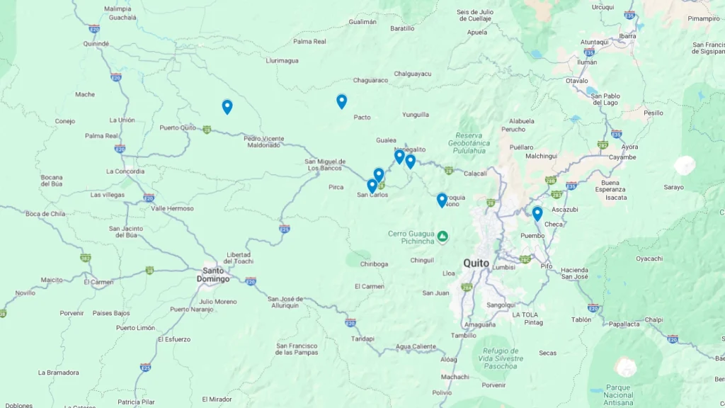 Northern Ecuador offers one of the richest birding circuits in South America, combining high Andean páramo, Chocó cloud forests, and tropical lowlands—all within a few hours’ drive from Quito. In just a week, it’s possible to enjoy more than 400 species, from iconic Andean Condors soaring over volcanoes to dazzling hummingbirds and tanagers of the Chocó.