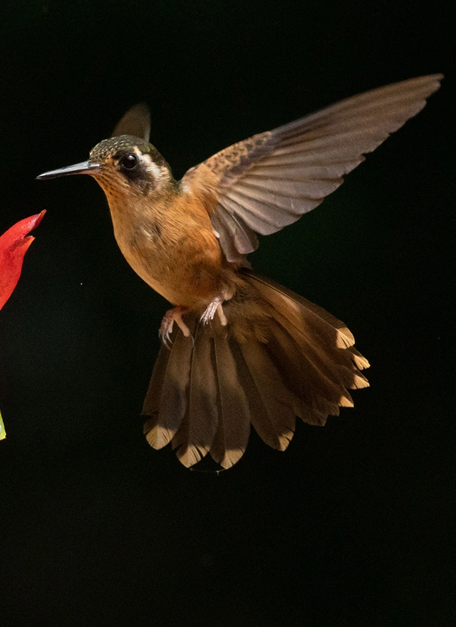 El Encanto Nature Reserve – La Drymophila Reserve – In the early morning, we embark on a drive to La Drymophila Reserve, nestled approximately an hour and a half away from El Encanto Lodge. This site is perched at an elevation of 6000 feet, offering a captivating experience for birdwatchers and nature lovers. Upon arriving at La Drymophila Reserve, our adventure unfolds as we set foot on the trails that lead us through this natural haven. These trails wind their way to well-placed feeding stations and into the forest itself. The reserve takes its name from the East Andean Antbird, scientifically known as “Drymophila caudata” an endemic species to the Eastern Andes range of Colombia. While exploring you’ll have the chance to encounter bird species. Among the highlights are the resplendent Flame-faced Tanager, the endemics Red-bellied Grackle, Dusky-headed Brushfinch, Tolima Blossomcrown and the Chestnut Wood-quail. Additionally, you may get Russet-backed Oropendola, the iridescent Violet-fronted Brilliant, Greenish Puffleg, and the distinctive, White-booted Racket-tail, Andean Emerald, Orange-billed Nightingale-thrush, the striking Blue-winged Mountain-tanager, and the magpie-like Magpie Tanager.