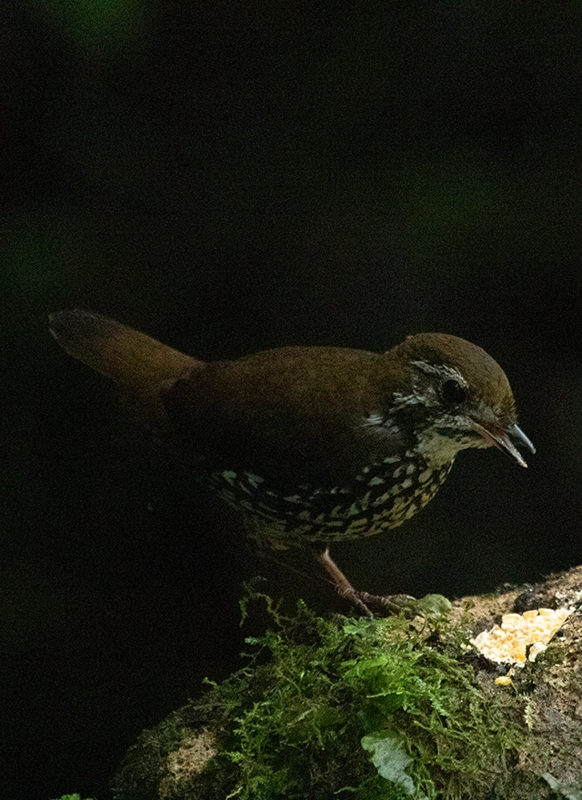 Keep your senses attuned for the elusive Lined Quail-dove, which occasionally graces the feeding stations with its presence. But the true allure of La Drymophila Reserve lies in its capacity to reveal the secretive and uncommon inhabitants of this pristine ecosystem. Among the most challenging yet rewarding species to spot are the elusive Hooded Antpitta, the elusive White-bellied Antpitta, and the exceedingly rare Schwartz’s Antthrush. We head back to El Encanto for Lunch and spent the afternoon seeking for birds around the garden, El Encanto is home for several good species in the field but also to the feeders some of those include the endemics Dusky-headed Brushfinch, Tolima Dove, Apical Flycatcher, Indigo-capped Hummingbird, Colombian Chachalaca, other great ones include the uncommon Ash-browed Spinetail, Golden-eared Tanager, Bay-headed Tanager, Pale-breasted Thrush, Gorgeted Woodstar, Guira Tanager, Crimson-backed Tanager, Gray-headed Tanager, Russet-crowned Warbler, Red-billed Emerald, Shining-green Hummingbird, Pale-bellied Hermit and many others that can be spotted just around the lodge gardens and feeders.